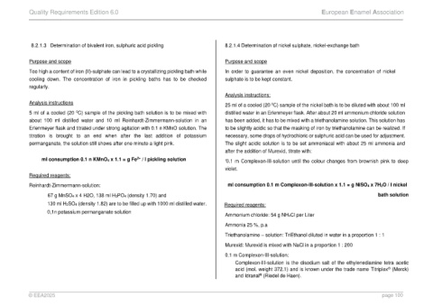 8.2.1.3 Determination of bivalent iron, sulphuric acid pickling 8.2.1.4 Determination of nickel sulphate, nickel-exchange bath