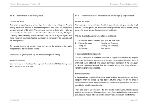 8.5.4.2 Determination of the density of slips 8.5.4.3 Determination of the flow behaviour of enamel slips by simple methods
