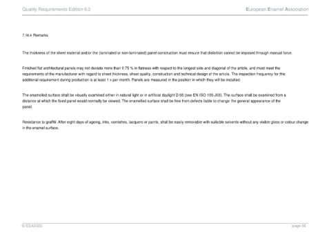 Finished flat architectural panels may not deviate more than 0.75 % in flatness with respect to the longest side and diagonal of the article, and must meet the