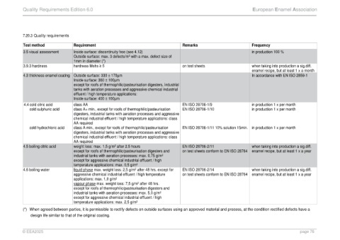 cold sulphuric acid class A+ min., except for roofs of thermophilic/pasteurisation EN ISO 28706-1/10 in production 1 x per month