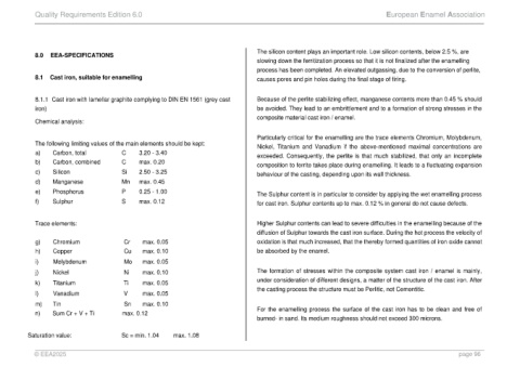 8.1 Cast iron, suitable for enamelling causes pores and pin holes during the final stage of firing.