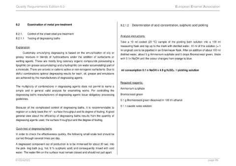 8.2 Examination of metal pre-treatment 8.2.1.2 Determination of acid concentration, sulphuric acid pickling